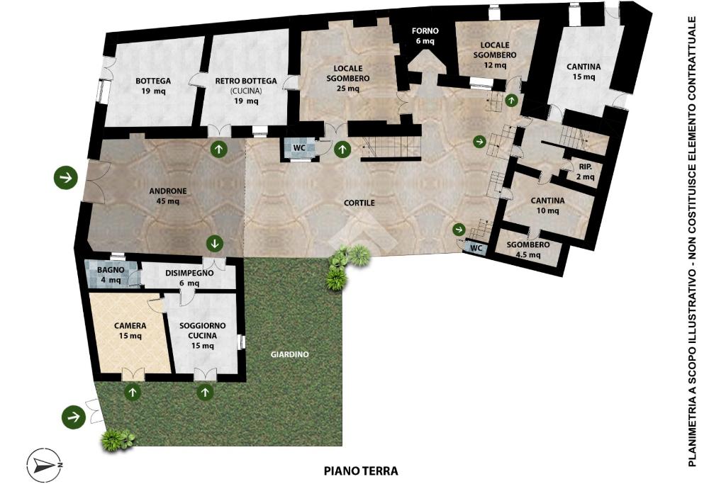 A rendere questa proposta ancora più unica è il giardino privato racchiuso a ferro di cavallo dalla struttura stessa: un angolo verde riservato, perfetto per rilassarsi, coltivare o semplicemente godersi la quiete o, perché no, offrire uno spazio outdoor esclusivo agli ospiti di una futura struttura ricettiva.