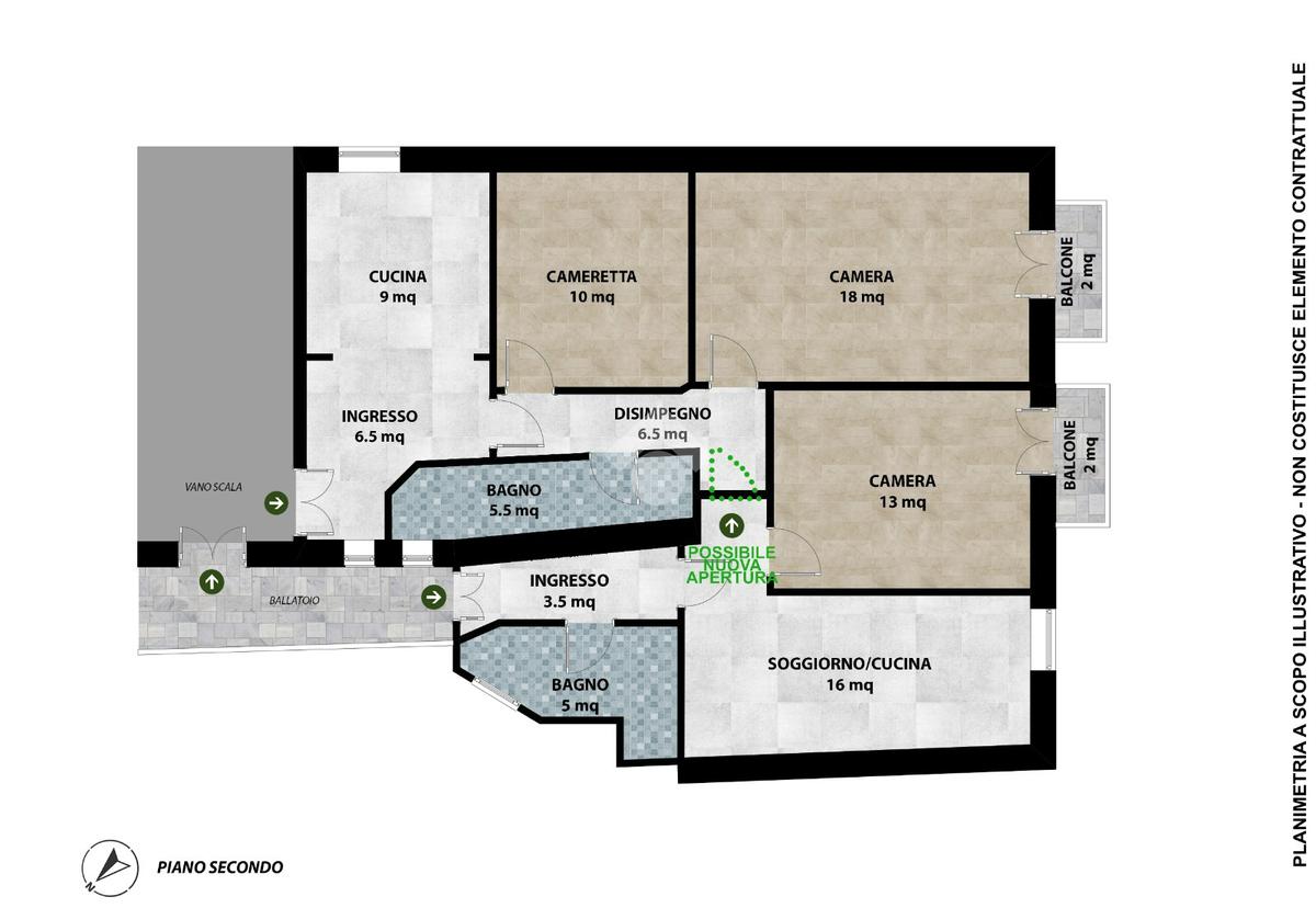 . Sullo stesso pianerottolo, in adiacenza a questa soluzione disponiamo di alloggio trilocale.