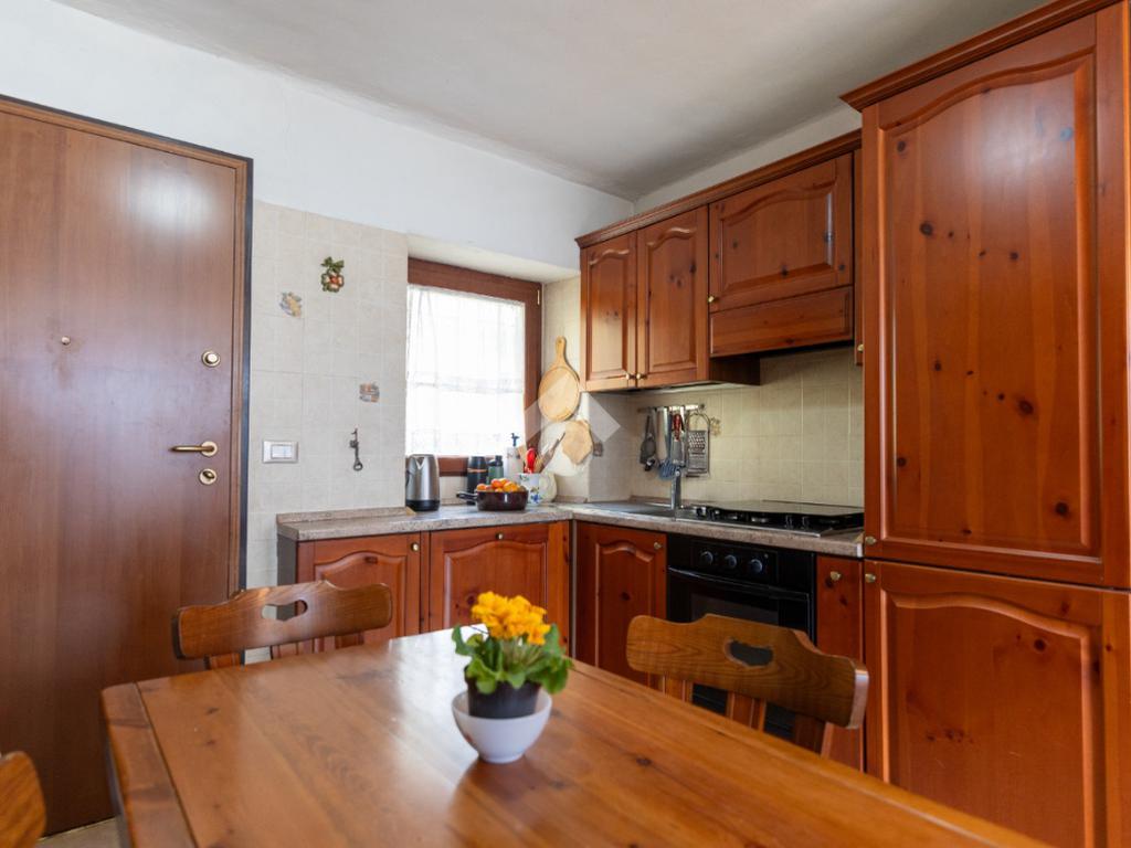 L’appartamento, graziosamente ristrutturato nel 2010, presenta una particolarità che ne aumenta il valore: l’ingresso avviene a piano terra sul lato nord, mentre sul lato opposto, grazie alla conformazione del terreno tipica della valle, l’abitazione si sviluppa come secondo ed ultimo piano, garantendo assenza di unità abitative sovrastanti e un affaccio aperto e panoramico.